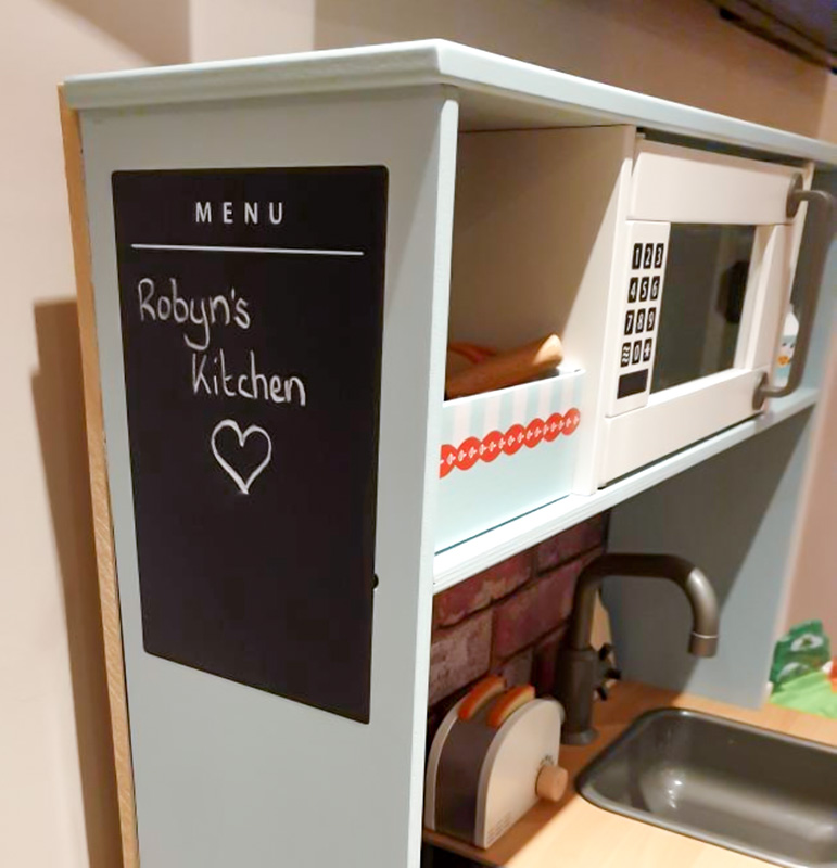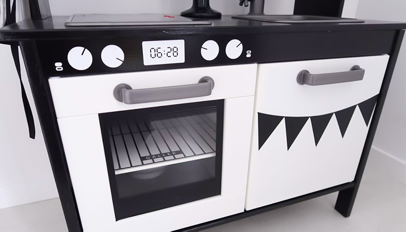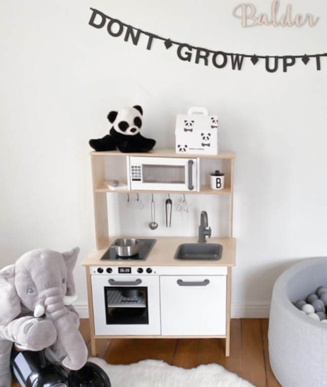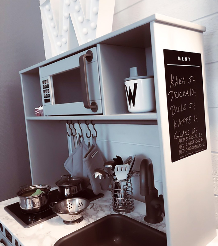 Med extra detaljer och sällskap av ett kylskåp, gjort av Eket-skåp, blir Duktig-köket komplett!