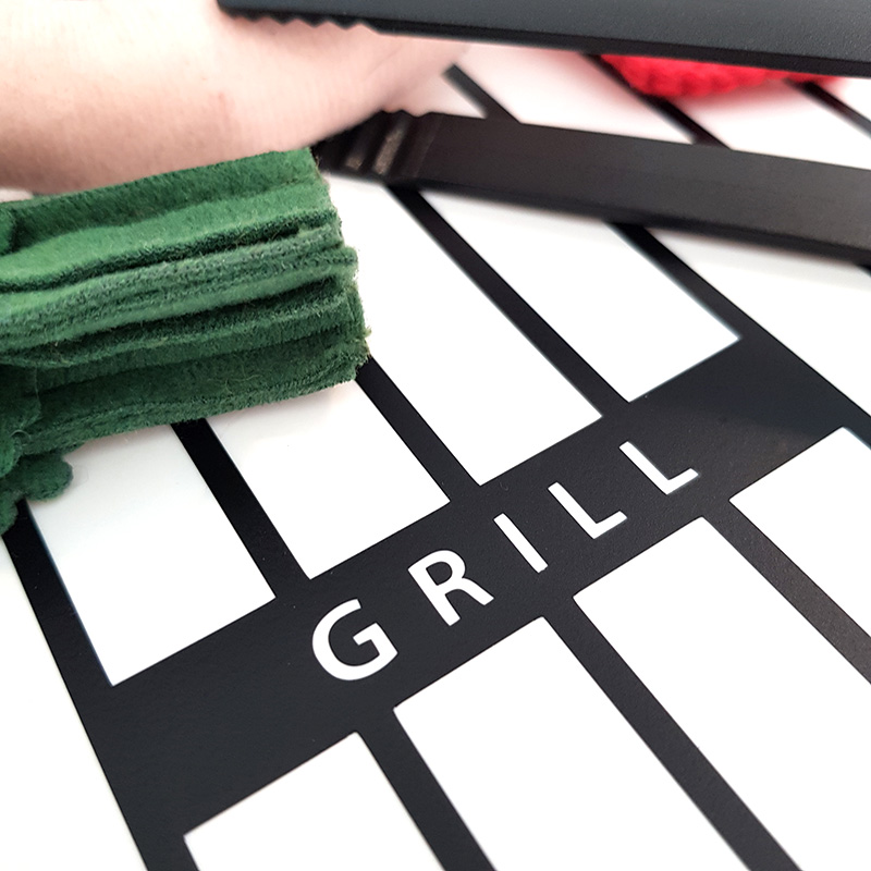 Gör om en barnpall till en grill med hjälp av en dekor som ser ut som ett grillgaller.