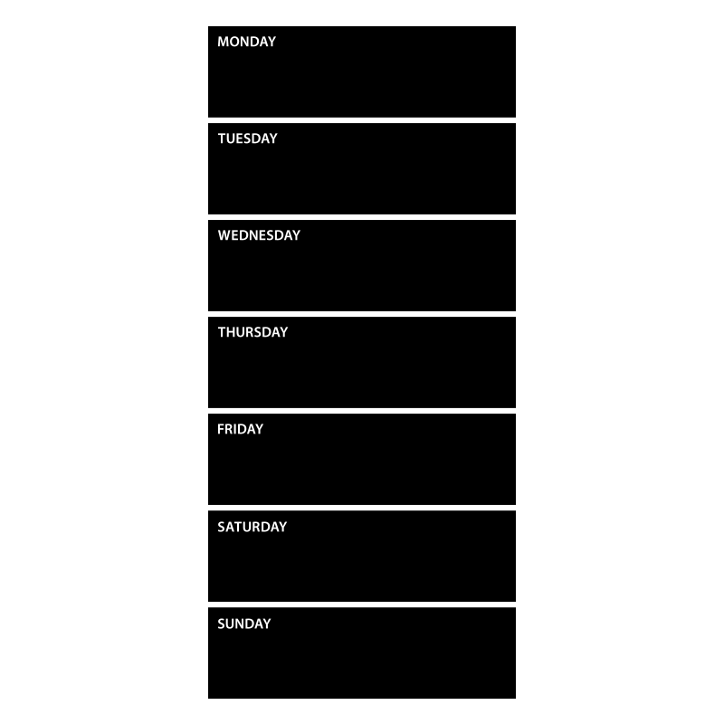 Wallsticker planeringstavla för en vecka. Veckodagarnas namn på engelska.