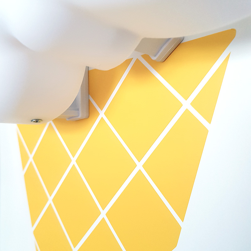 Glasstrut ihop med molnlampa – närbild på montering Läs mer »
