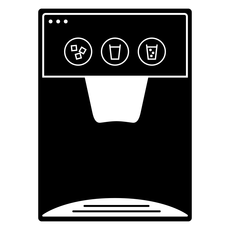Ismaskin med knappar för iskuber, vatten och bubbelvatten. Perfekt detalj när du gör om ett skåp till leksakskylskåp.