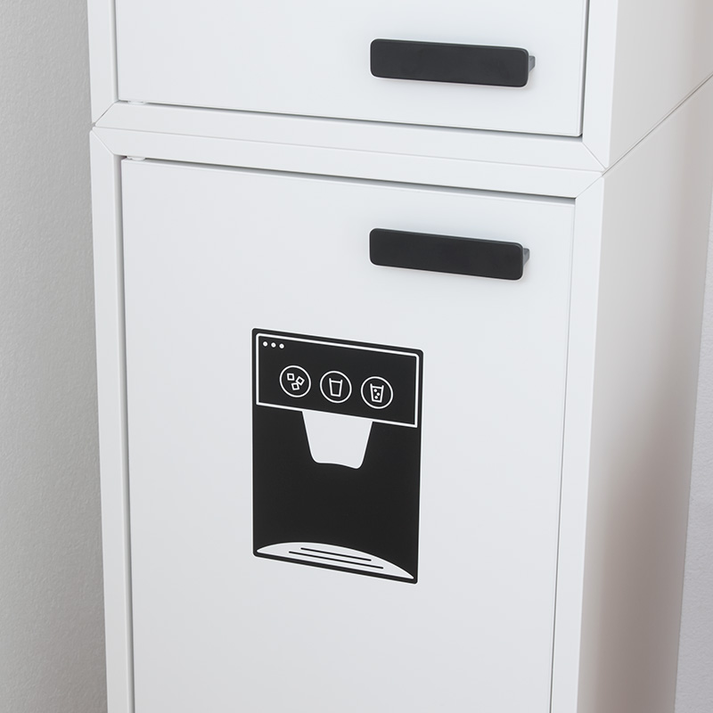 Eket-skåp med wallsticker i form av ismaskin.