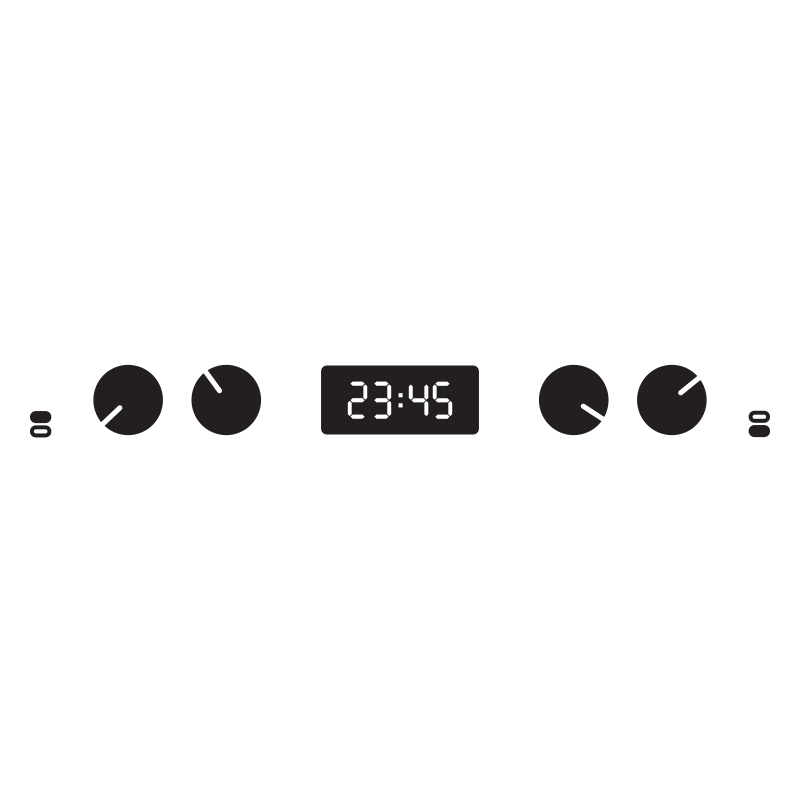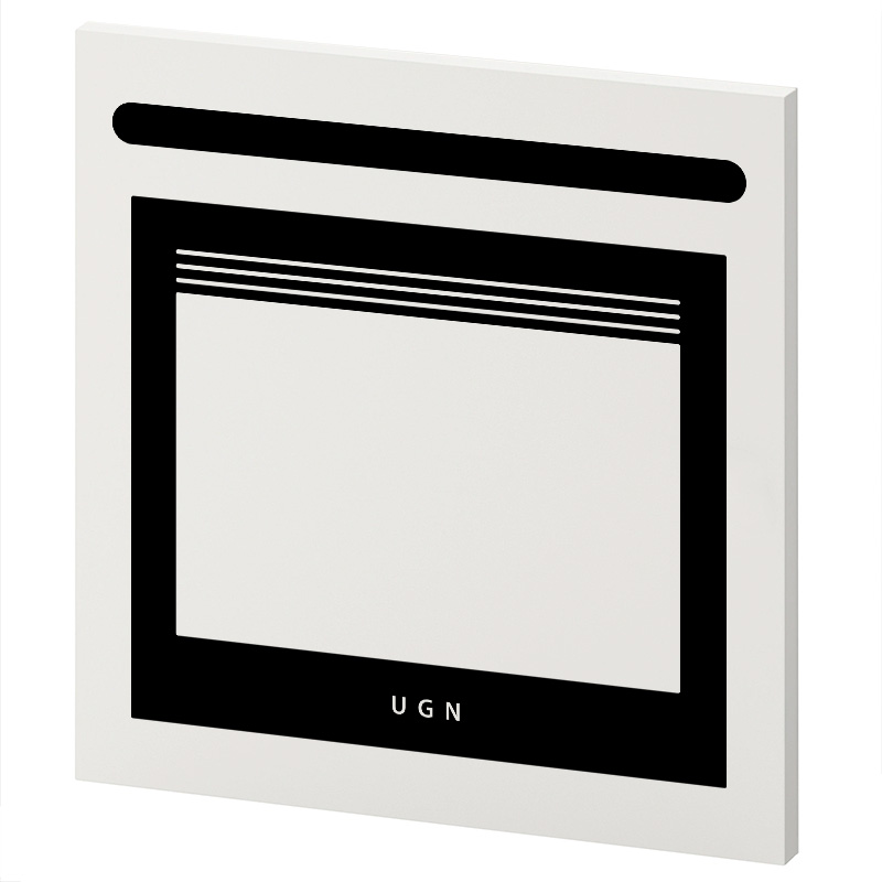 Ugnslucka med ”handtag” och en representation av ugnsglaset.