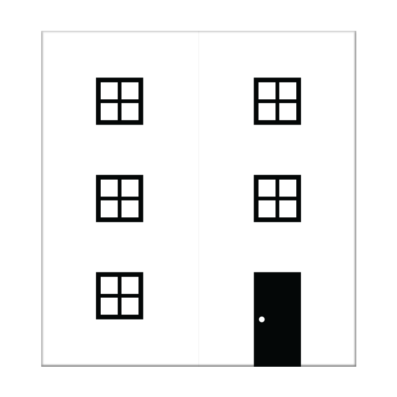 Exempel på hur dörr och fönster kan kombineras. Här på en möbel motsvarande IKEA Stuva, 60×62 cm.