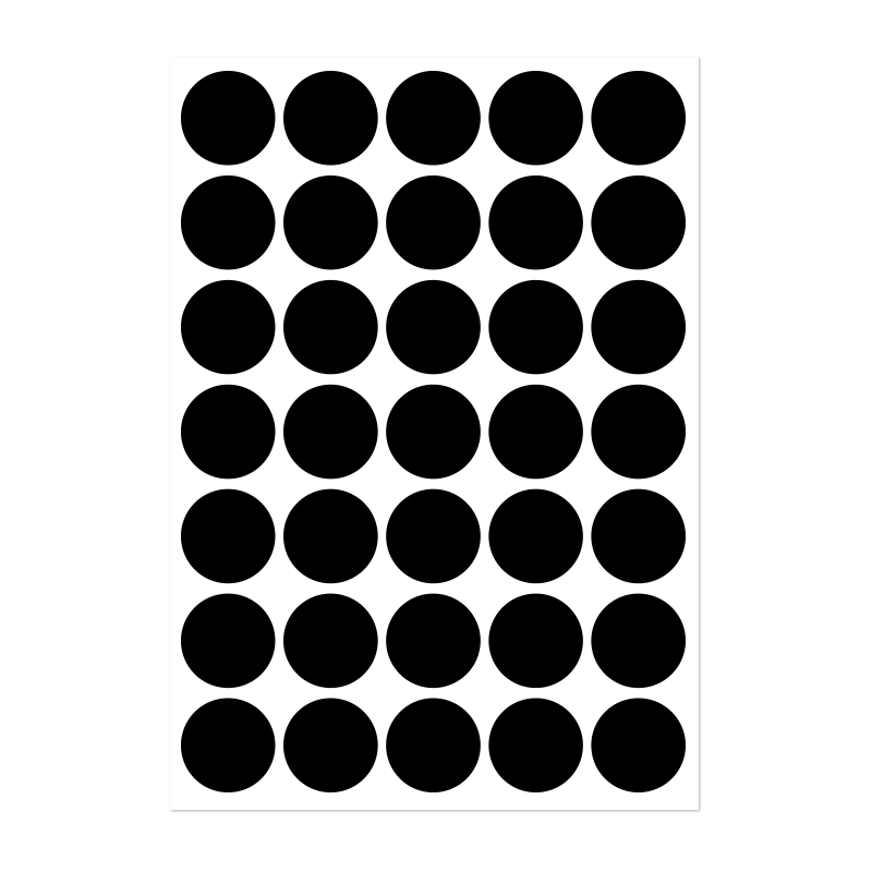 Prickar med diameter 2,5 cm levereras på ark med 35 st per förpackning. Snygg matt yta.