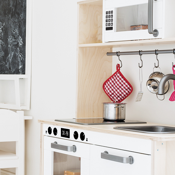 Ugnsvred och klocka i perfekt storlek för IKEA:s lekkök.