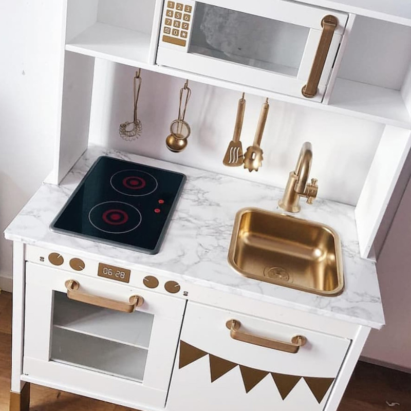 Fint Duktig-kök med detaljer i svart och koppar.