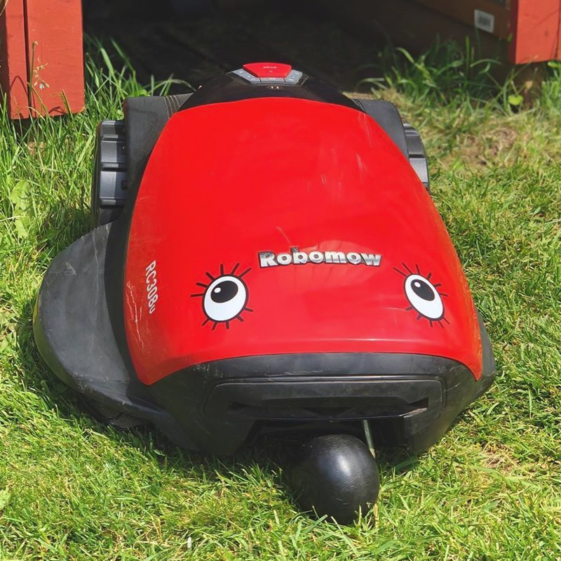 Robotgräsklipparen Doris önskade sig fransar också, när väl ögonen kom på plats!