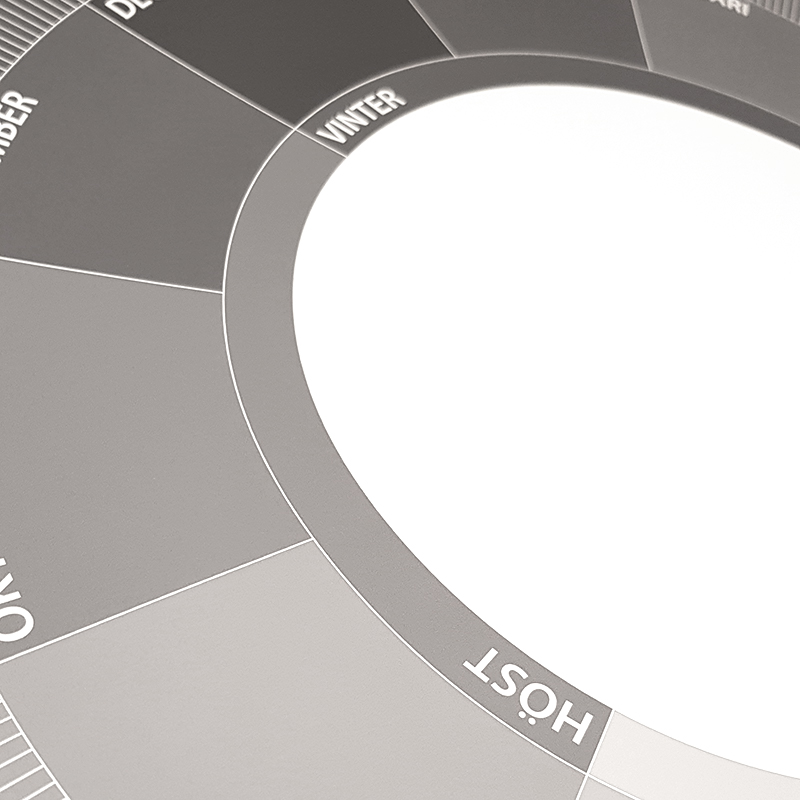 Den mörkare delen av året är mörkare även i årshjulet. Plats för anteckningar varje månad.