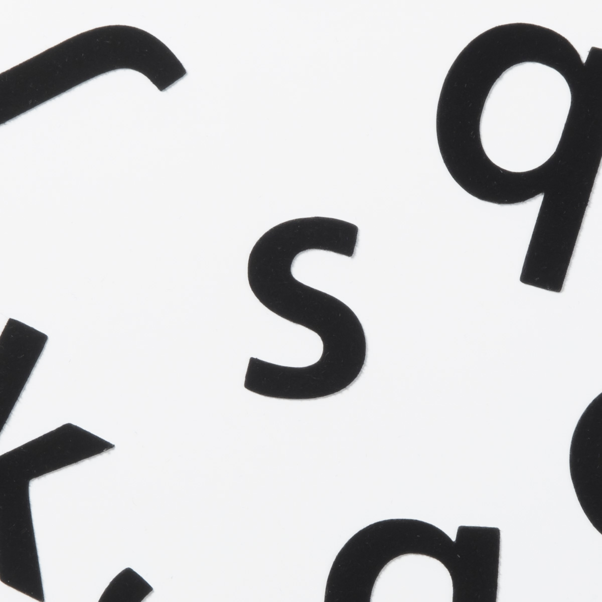 Lilla s – magnetbokstav med yta i svart sammet.