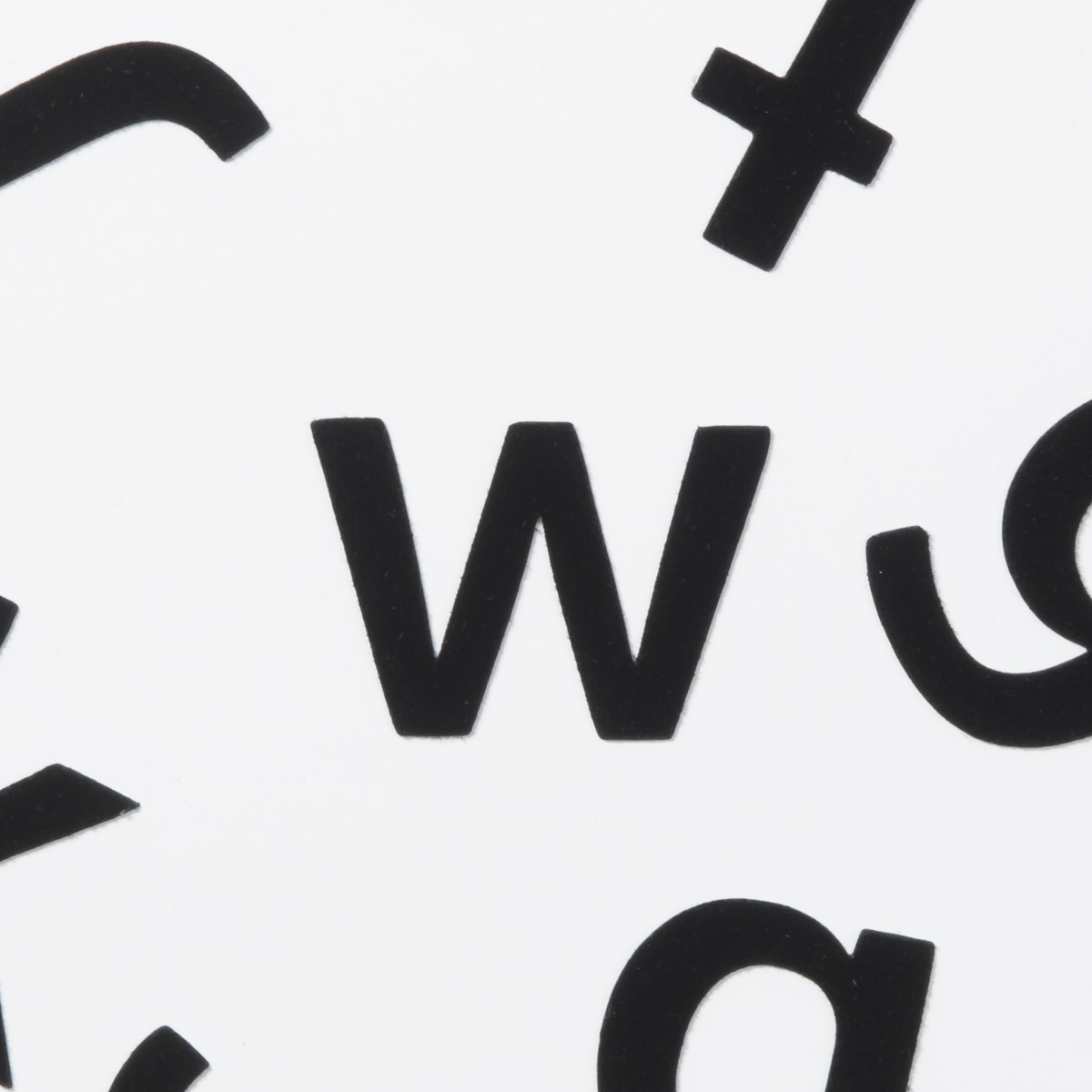 Lilla w – magnetbokstav med yta i svart sammet.