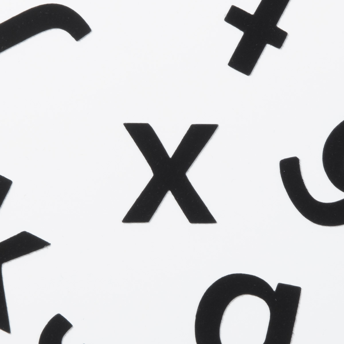 Lilla x – magnetbokstav med yta i svart sammet.