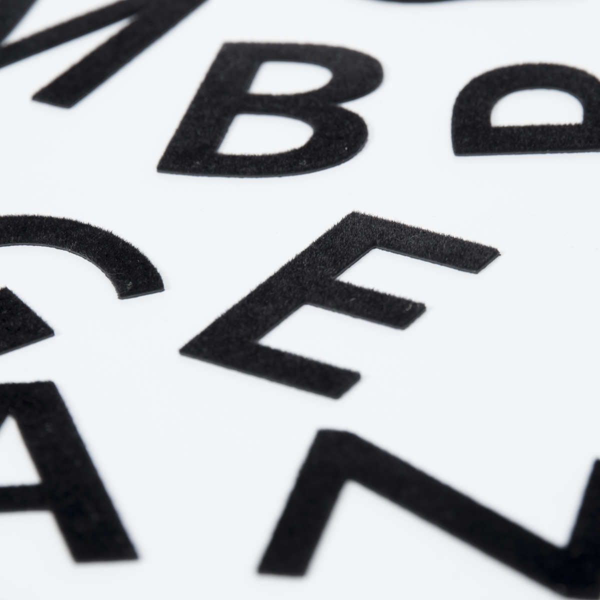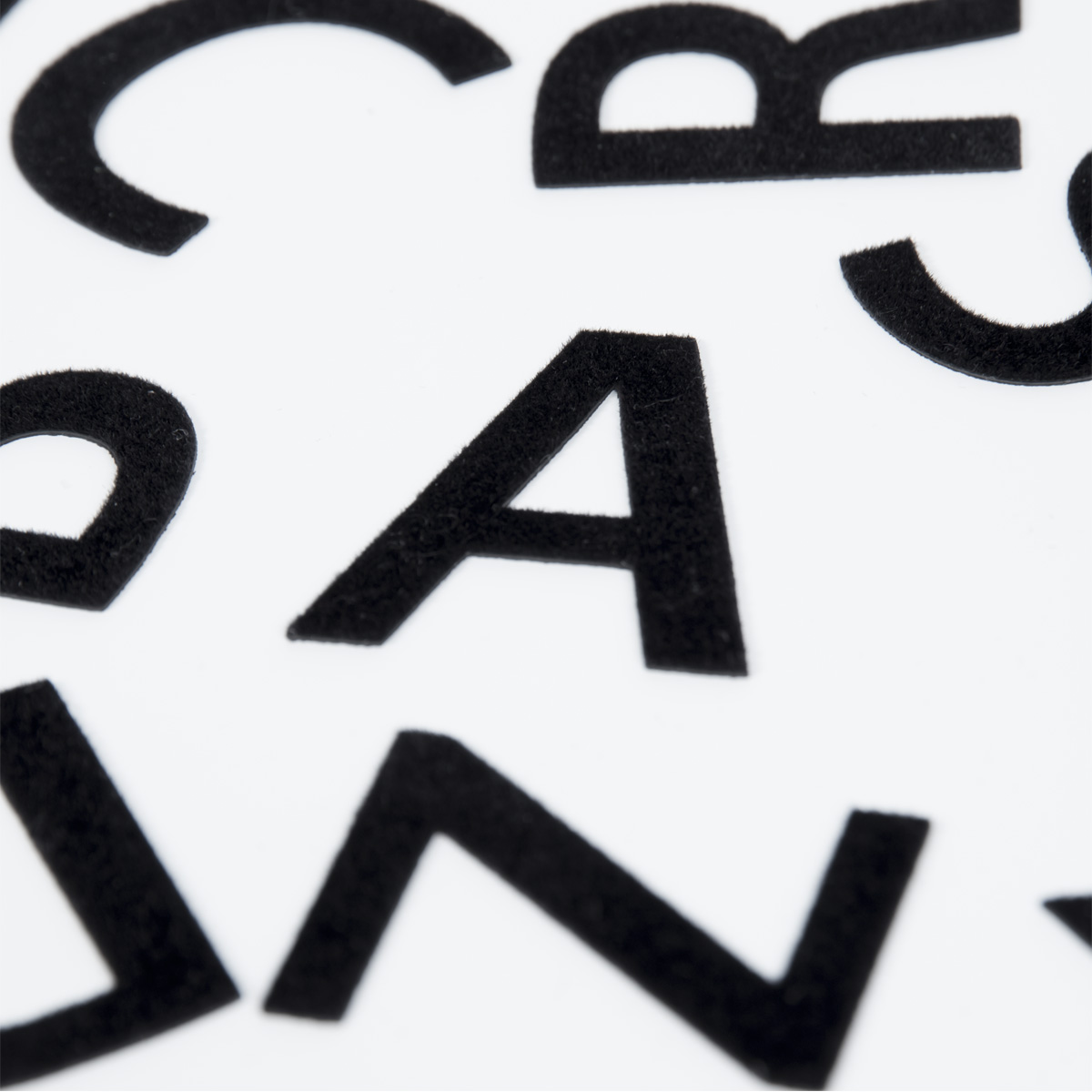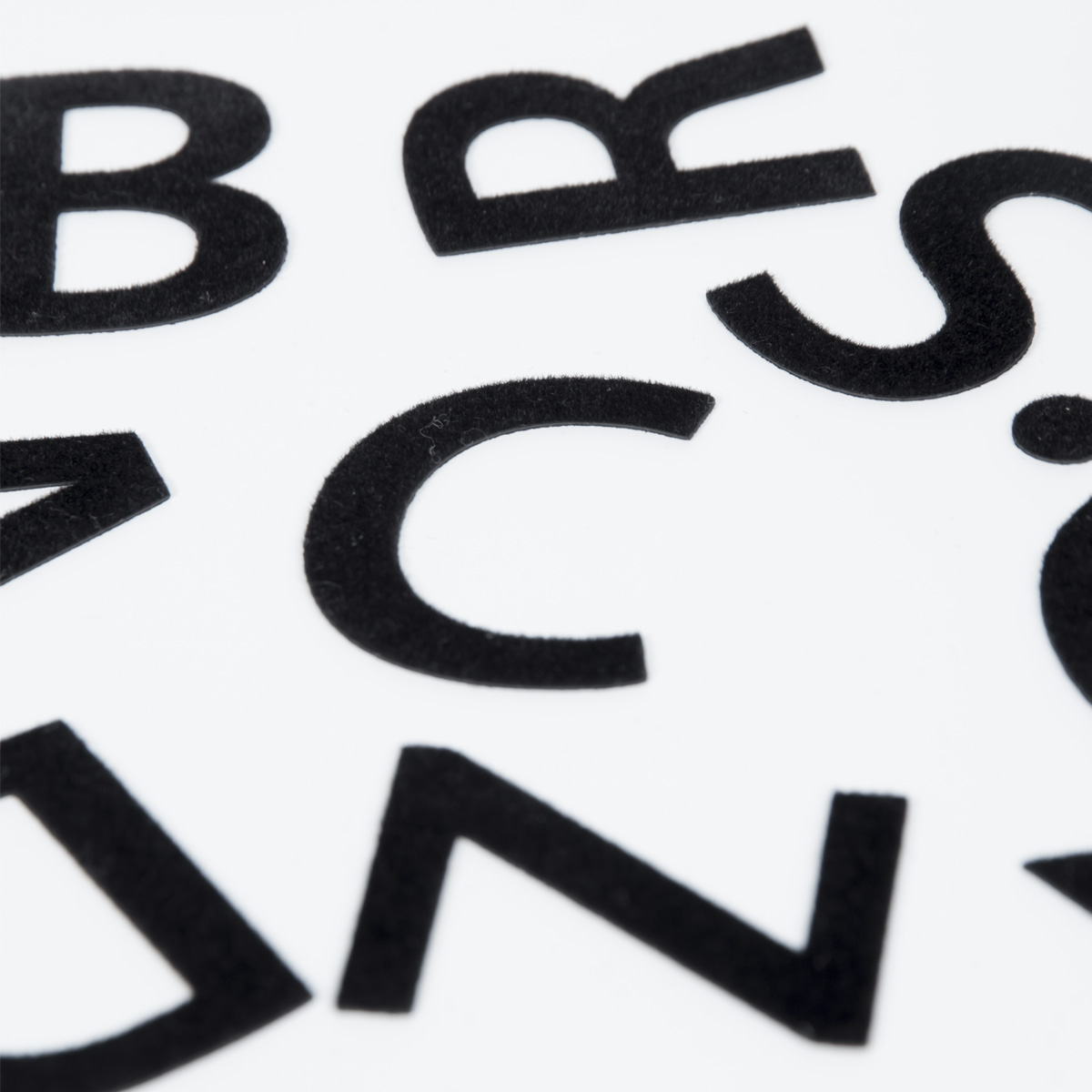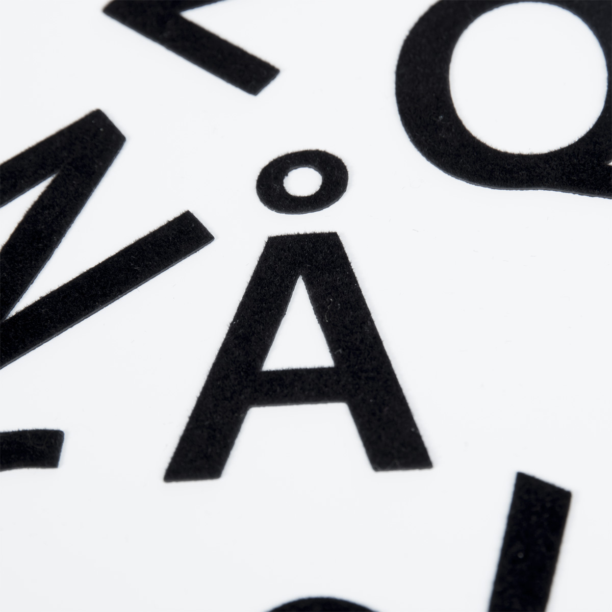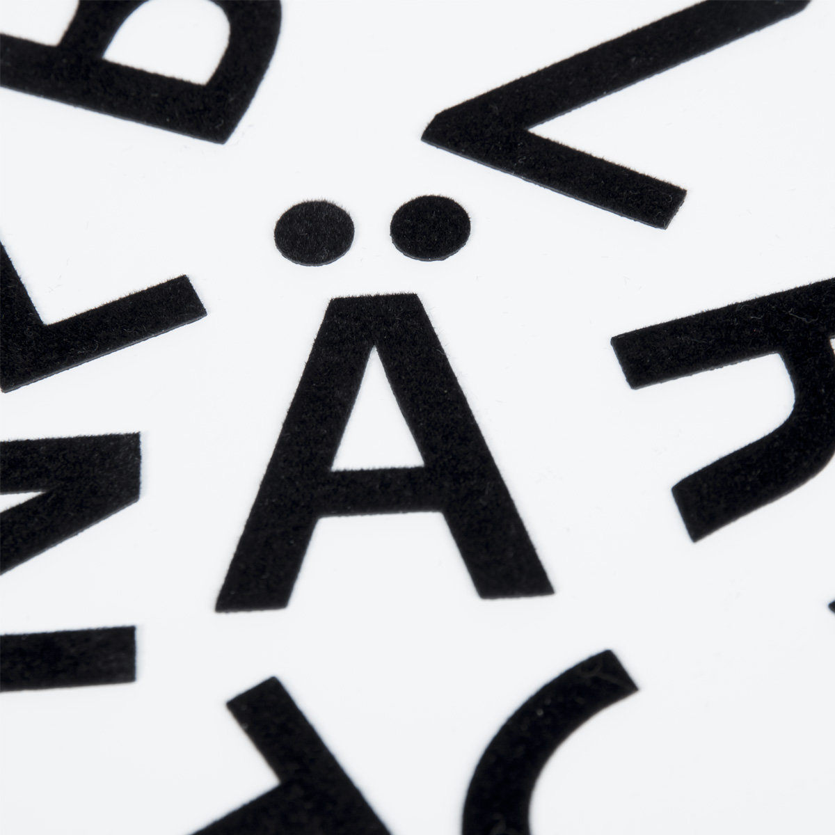 Stora Ä – magnetbokstav med yta i svart sammet.