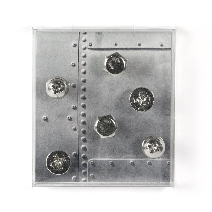 Silverfärgade magnetskruvar levereras i set om sex magneter.