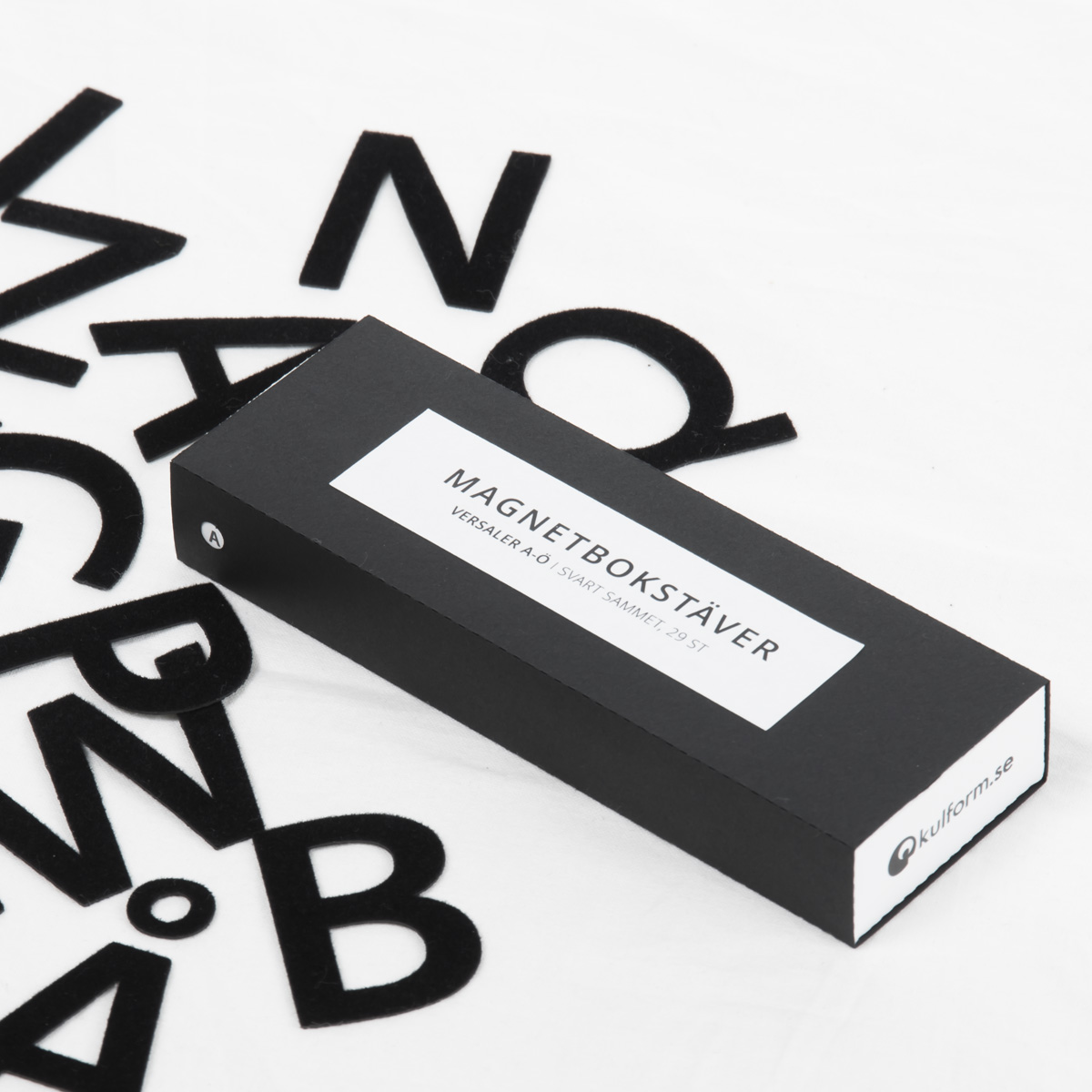 Magnetbokstäverna levereras i en specialdesignad ask som även den är framtagen av Kulform.