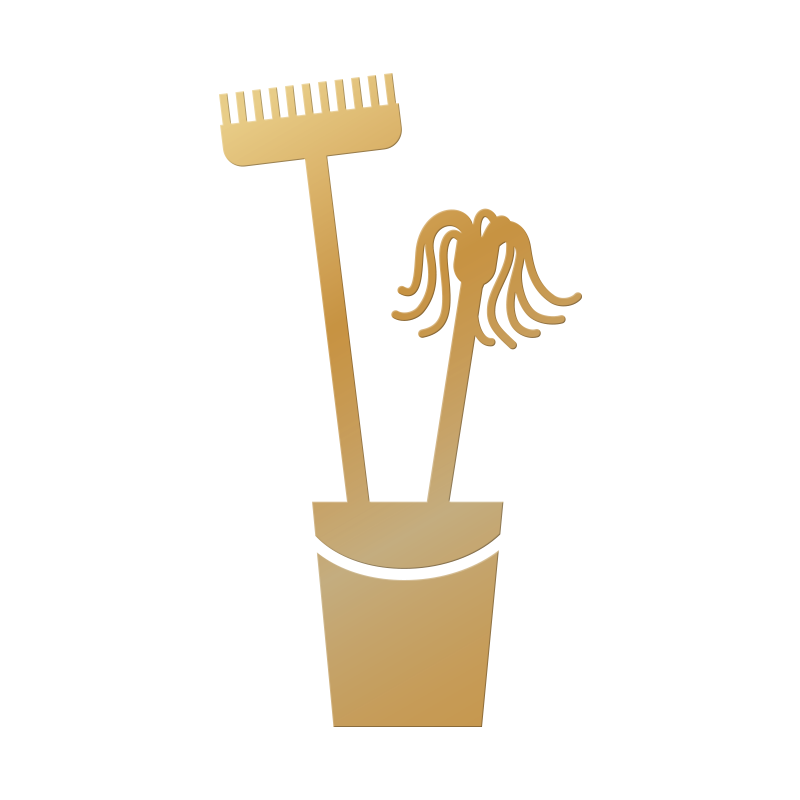 Guldfärgad skylt med mopp och kvast