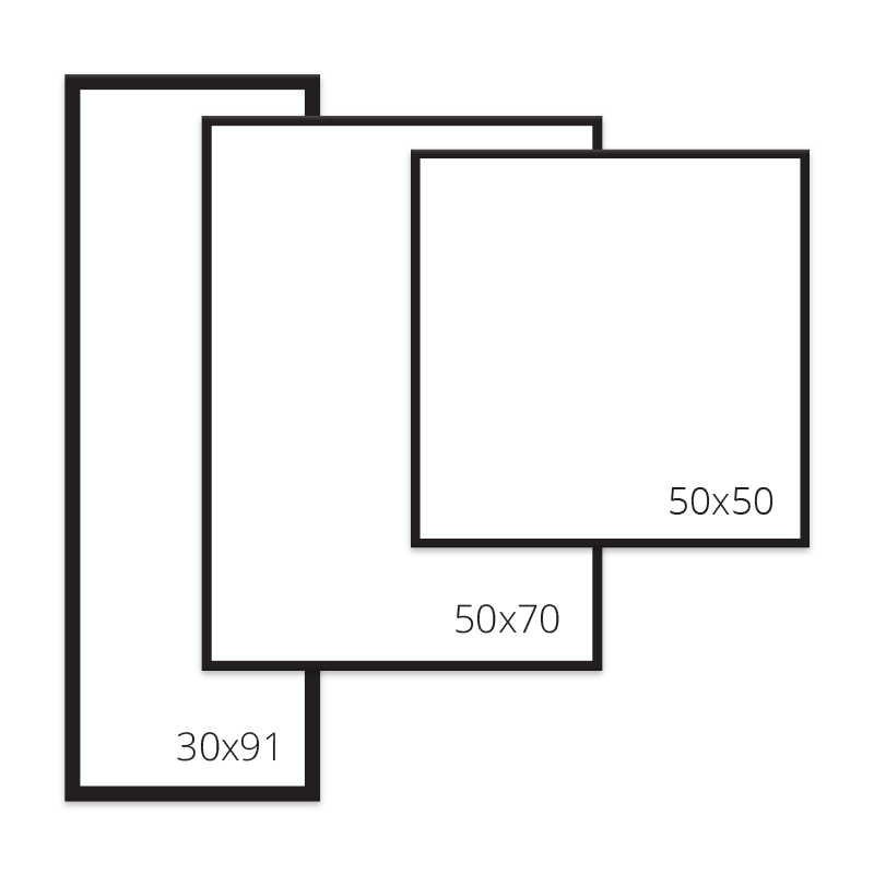 Ramen Stilren, med måtten 30×91 cm, har en bredare profil än ramarna i serien Galant respektive Oslo.
