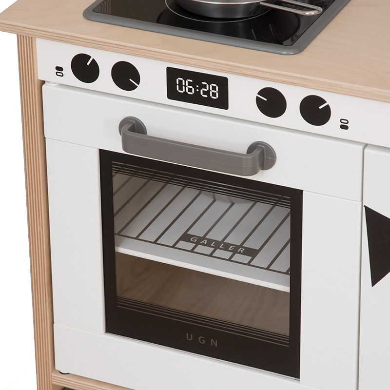 Reglage för spisfläkt, en spishäll med tre plattor och ugnslucka gör lekköket komplett!