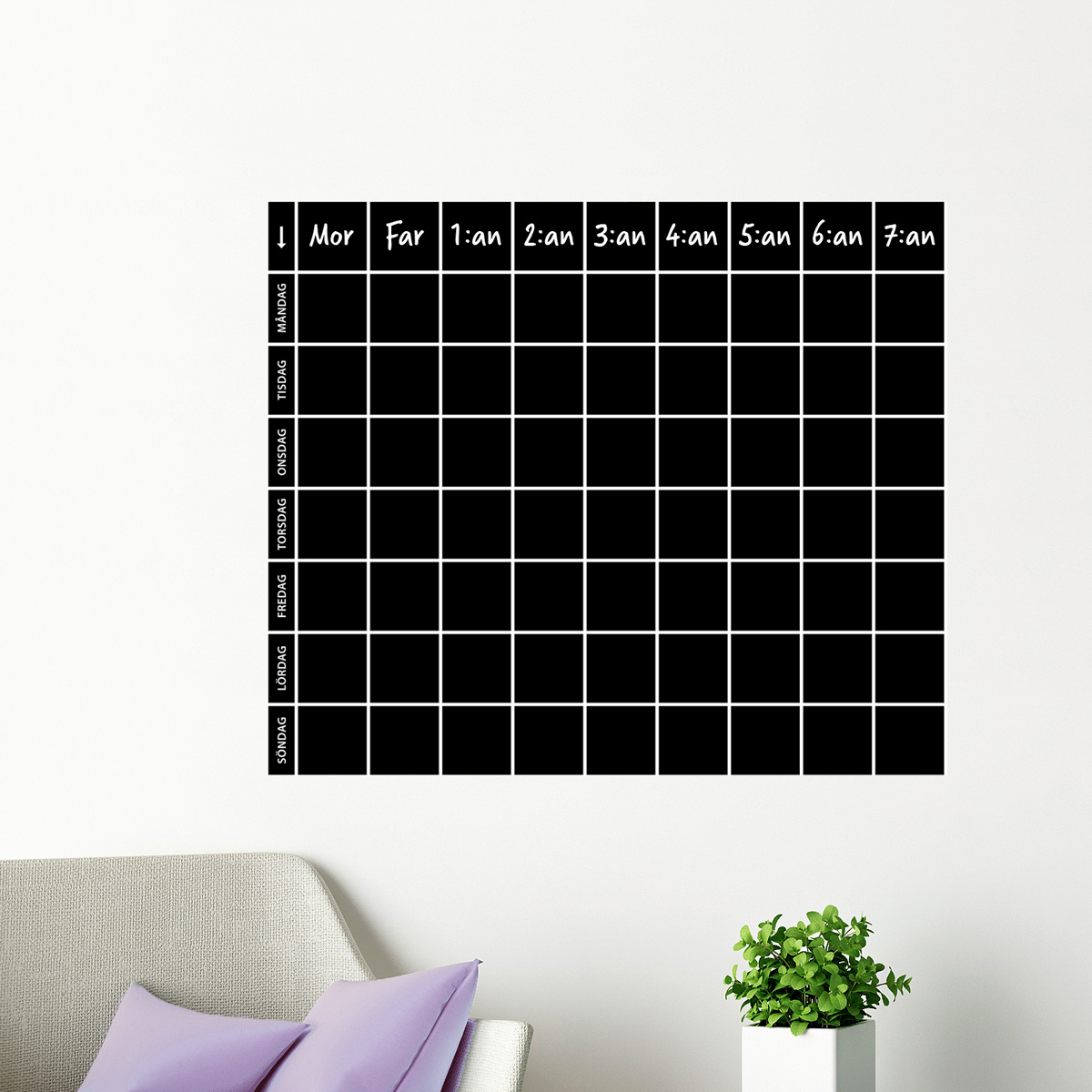 Skriv upp allt du ska komma ihåg på denna wallsticker som fungerar som en griffeltavla.