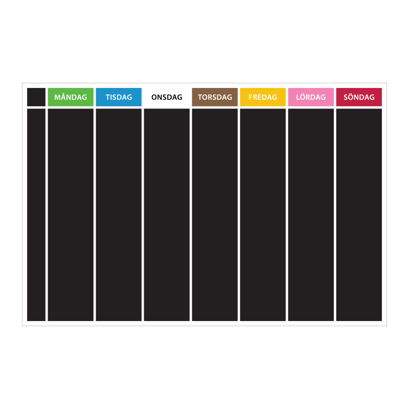 Wallsticker med veckodagarnas namn i färg enligt TEACCH