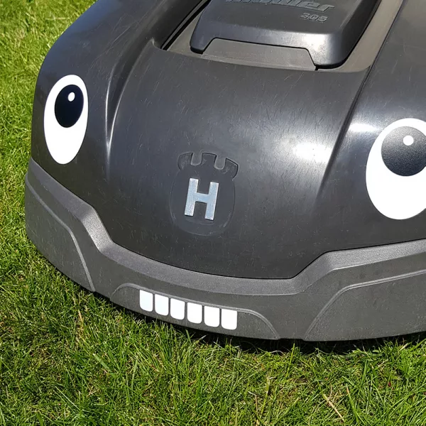 Teeth for happy and hungry robotic lawnmowers …or any other gadget/surface that you think would be a little more fun with some teeth! In this case, the teeth are nicely white and are delivered in a set of 2 larger and 6 smaller barbs. You decide yourself how to arrange them and how many fit your particular robot. Maybe your lawnmower gets two bigger bunny teeth and your robot vacuum cleaner a neat row of smaller “fangs”?