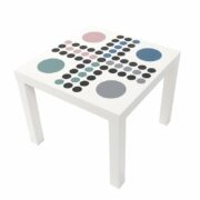 Fiaspel direkt på bordet! Gör om ditt bord till ett spelbord med det populära sällskapsspelet Fia med knuff! Spelplanen mäter 51 x 51 cm och passar perfekt på exempelvis Ikeas bord LACK. Den självhäftande planen har snygga mörka pasteller med matt finish. De små cirklarna och punkterna är 3,9 cm i diameter och ”bona” i hörnen är drygt 12 cm. En kul inredningsdetalj i barnrummet, lekrummet eller vardagsrummet.